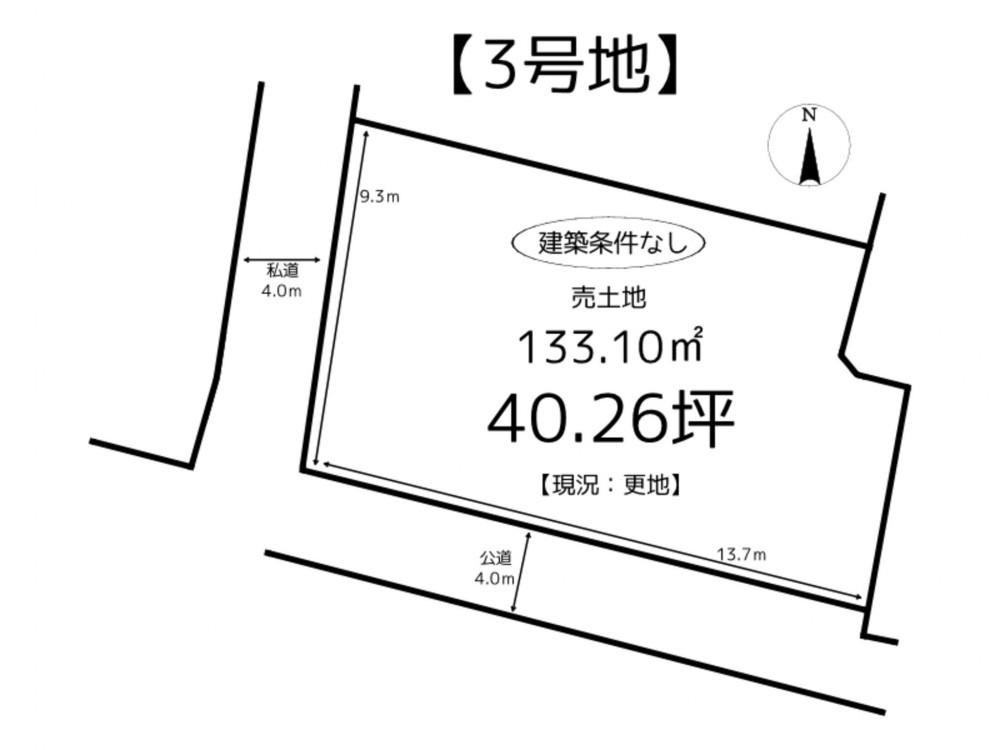 南側 公道4.0m 間口約13.7m - 土地面積